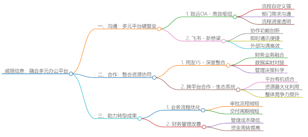 在當(dāng)今競爭激烈的商業(yè)環(huán)境中,企業(yè)數(shù)字化轉(zhuǎn)型已成為提升競爭力的關(guān)鍵。威麗信息敏銳地捕捉到這一趨勢,通過建立良好的溝通和合作機(jī)制,借助致遠(yuǎn)OA、用友YS、飛書等元素的融合,為企業(yè)打造全面而高效的數(shù)字化轉(zhuǎn)型解決方案。